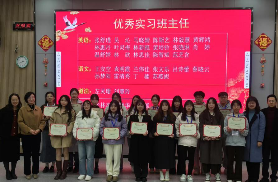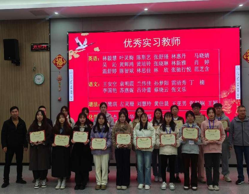 随着颁奖环节的圆满落幕,本次欢送会也缓缓降下了帷幕,标志着实习生们这段宝贵实习经历的完美收官。此刻,他们满载着收获与成长,即将踏上新的征程。在未来的日子里,英语系的实习生们将以东侨二中为坚实的起点,以追求卓越为崇高的目标,以不懈奋斗为永恒的动力,逐步成长为“有理想、敢担当、能吃苦、肯奋斗”的新一代英语教师,为教育事业的发展贡献自己的青春!