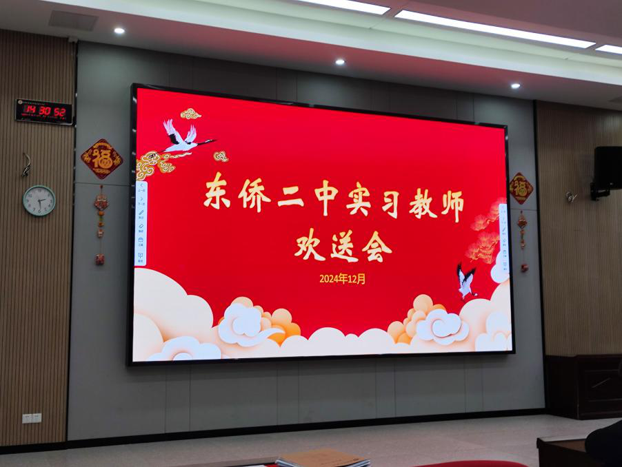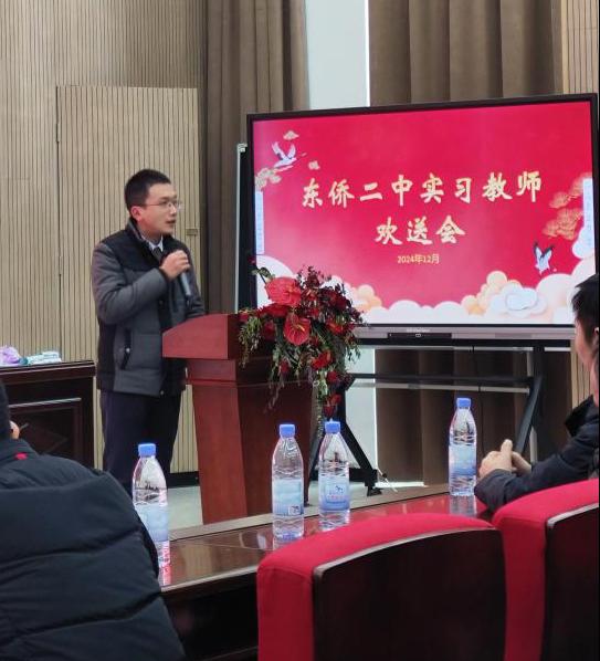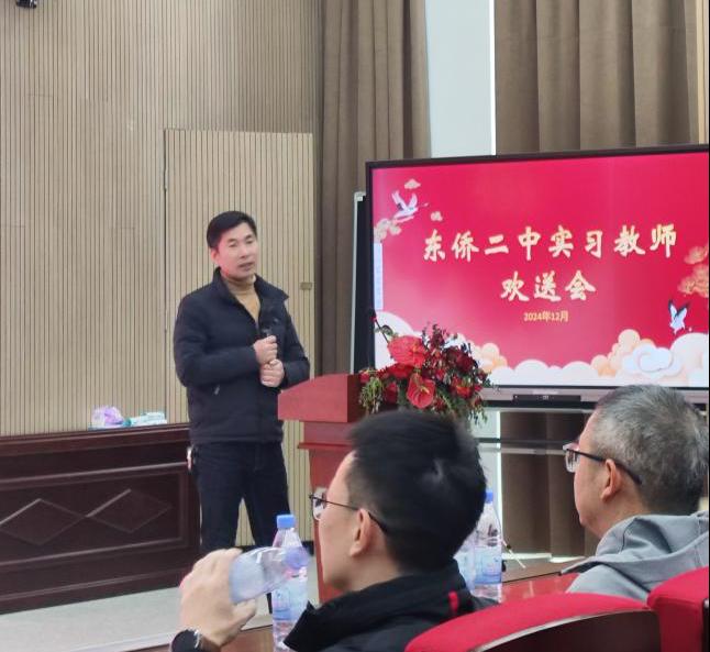 2024年12月13日下午两点,一场温馨的实习教师欢送会在东侨经济技术开发区第二中学隆重举行。英语系的黄薇老师和蔡江云老师,携同2025届英语(师范)专业的18名实习生,共同出席了这一意义非凡的活动。此次欢送会不仅标志着实习生们为期三月的实习生活圆满结束,更是对他们辛勤付出的肯定与赞赏。