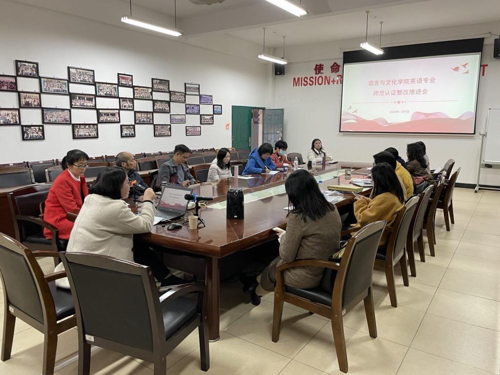 1月9日下午,公司在求知楼407会议室召开英语专业师范类专业第二级认证整改工作布置会。公司副经理黄荣生及英语专业全体教师参加会议。会议由英语系主任游灼梅主持。