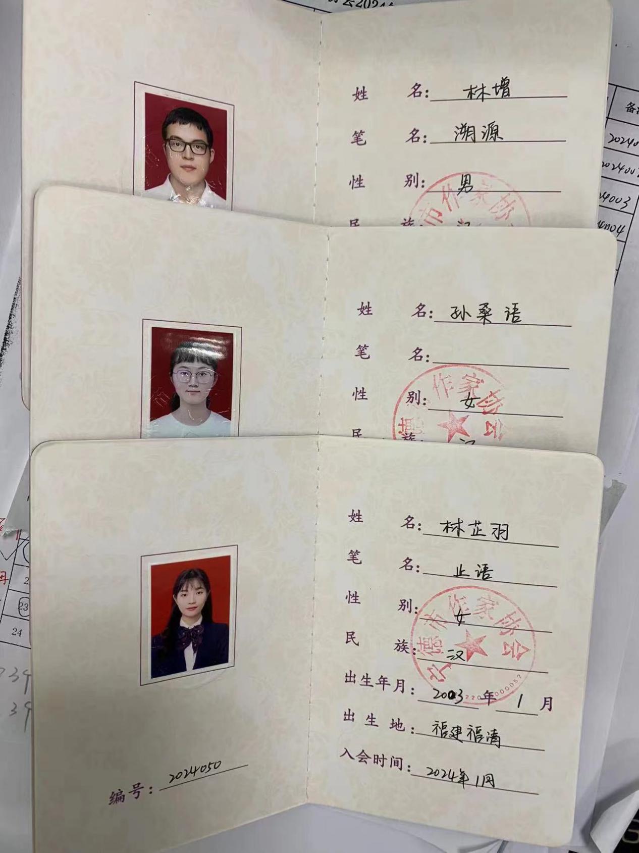 近日,PA视讯官网鹤鸣文学社的三位成员:2021级汉师林芷羽、2022级汉师林增和2022级汉师孙桑语成功获批2024年宁德市作家协会会员,这是鹤鸣文学社继王珊珊、冯少昱、杨娟娟等之后又一批获得认可的校园文学创作者,这既是同学们自身努力的结果,也得益于公司领导老师的谆谆教诲与社会各界的支持。希望三位同学不负老师们的期望,砥砺奋进,再攀高峰。