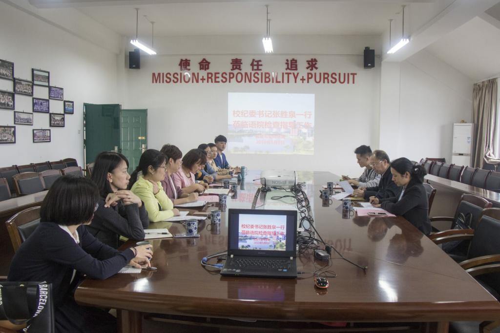 2019年5月8日上午,校纪委书记张胜泉一行莅临语言与文化公司检查指导工作。校纪检监察审计处副处长郭赛玉等,公司领导班子成员、廉政文化系列活动的负责人、指导老师等参加调研。
