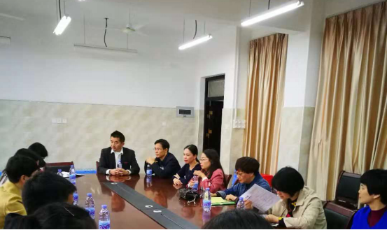会上,谢青云老师首先代表英语组对龚经理一行表示热烈的欢迎。龚经理对实习指导老师们表达了深深的感谢,希望同学们多学习老师们的革命奉献精神,并投身于自己的教学活动中,并请指导老师们有针对性的给出自己的指导建议。