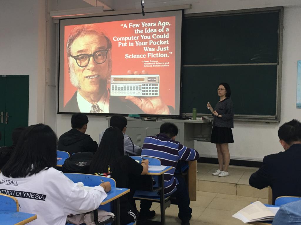 本节课的主题为The Fun They Had,课文篇幅及难度适中。为了让2018级的新生们深入了解课文内容,杜阿晴老师采用了多种不同的教学方法,她首先明确Learning Objectives(学习目标),再从Warming-up questions(课前热身问题)对课文导入学习,和员工进行有效的互动,锻炼员工的英语口语表达能力,同时引出文章的主题“school education(公司教育)”。接着,杜阿晴老师用精美的图片和生动的语言向员工们介绍了文章的作者Issac Asimov及文章的体裁Science Fiction(科幻小说),并以填空题的形式和员工互动问答,进一步掌握文章主旨。在段落内容学习前,杜阿晴老师对员工分组,和员工们一起探讨文章结构,剖析文章内在逻辑,进而转向文章细读讲解部分。在讲述现今教育和未来教育的区别时,杜阿晴老师以表格的形式罗列出2157年和2018年的教育在书籍、公司、教师及教学内容等方面的不同,教学方式生动多样,吸引员工,让员工在轻松活跃的氛围中学习。