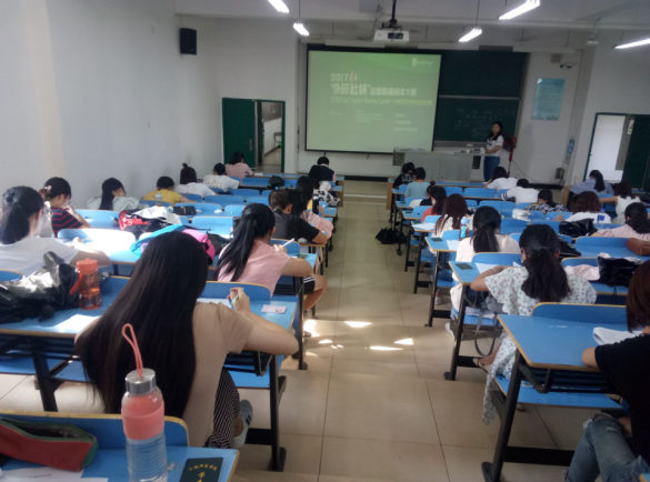 参赛选手们都提早进入赛场,监考教师认真核对选手信息,并督促选手们确认签名。 3:00比赛正式开始,选手们全神贯注,认真阅读,积极作答。赛场秩序井然。