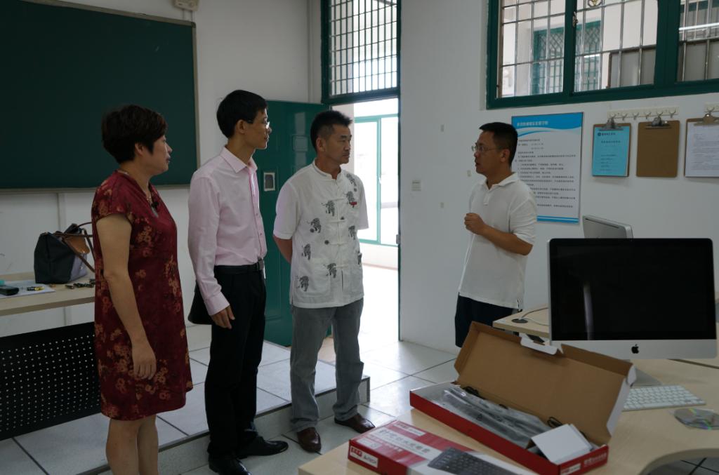 7月9日上午9点, 语言与文化公司龚帆元经理、陈丽冰副经理、黄荣生副经理一行到影像制作实训教学示范中心检查指导工作。2016年中央财政支持地方建设项目即影像制作实训示范中心二期建设刚刚完成验收工作。目前,影像制作实训中心已建成摄影摄像器材实验室、录音实验室、虚拟演播室、非线性编辑实验室、摄影实验室,面积300多平方,总资产超过400万元,已经形成较为完整的拍摄、录音、剪辑为一体的实验室系统,在很大程度上改善和提高了网络与新媒体专业的实验实训条件。院领导要求在原有的基础上,应进一步加强实验室后续建设工作,完善实验室规章制度,进一步提高实验室的利用率,为全院师生的教学科研服务。