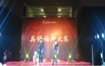在主持人的致辞和开场舞之后,比赛拉开了帷幕。此次参加比赛的是来自英语系的7支队伍,经过事先的抽签之后,他们将依次登台表演。华美的炽灯笼罩舞台,霓虹闪烁,六支参赛队伍用流利的外语口语和声情并茂的表演技巧演绎出高妙的话剧水平,得到阵阵掌声。在整个话剧的演绎流程中,也穿插着抽奖、游戏环节等业余节目,现场的气氛一度高涨,呼声不绝于耳。正当我们沉浸在这美好的氛围中,此时天公不作美,突然下起了大暴雨,现场的比赛不得不中断,转移到室内进行。