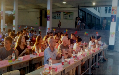 大赛邀请了两位外教Mike、Andy,以及林丽丽、林海英两位老师担任评委,还邀请了几位外国朋友。