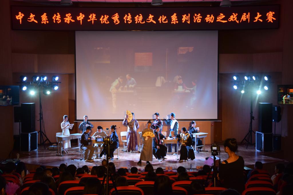 5月12日晚,由校团委主办,汉语言文学系承办的第八届校园文化艺术节之戏剧大赛在图书馆报告厅精彩上演。经过初赛的激烈角逐,共有10个作品进入决赛。从《茶馆》《孔雀东南飞》《兴亡命》等传统经典作品到传递文明礼仪的《地铁故事》以及反映都市情感生活的《回家》等,老员工们青春演绎各种角色,或幽默或深情的作品轮番上演,让观众度过一个美妙难忘的夜晚。