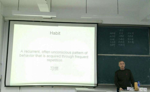 12月6日,晚上六点半,我系幽默风趣的外教Mike在求知楼A201教室开设主题为“Hibits(习惯)”的讲座,此次讲座面向全校师生。