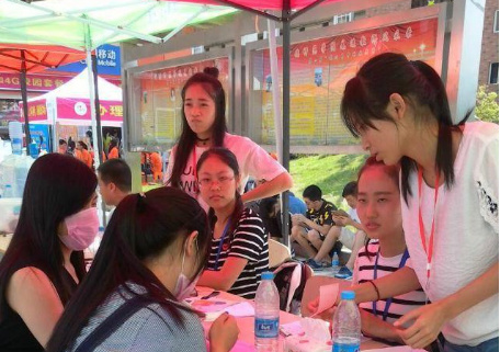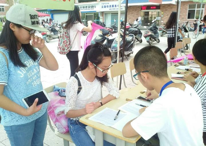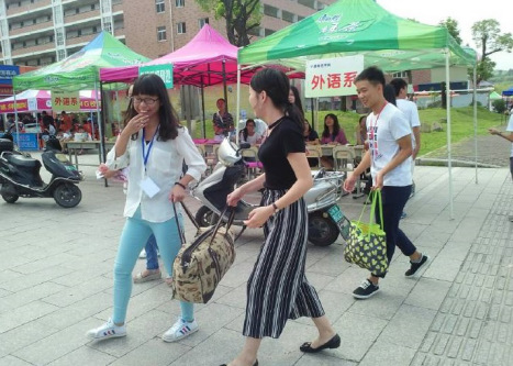 在动车站、校门口、食堂及二号楼门前设立接待点。每当一位新生及新生家长到来,都有数个工作人员笑脸相迎,热情地帮忙搬行李,带领他们前去报道、安顿。