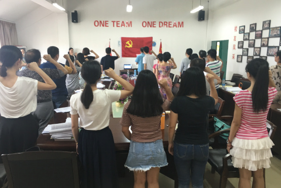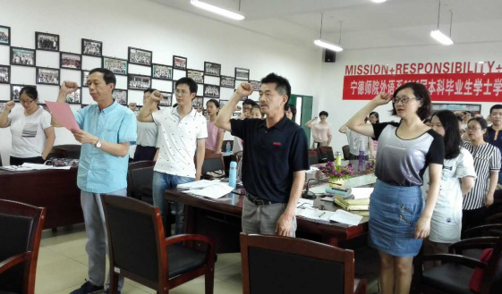 外语系党总支旨在通过开展重温入党誓词活动,进一步全体党员对党忠诚的理想信念,增强全体党员的责任意识,激发全体教师立足本职岗位积极参与“两学一做”学习教育和创建活动的积极性,争做一名“让党放心、让员工满意”的合格党员。到场的员工党员表示,通过重温入党誓词,使他们深深感受到党员的责任、使命、荣耀,他们表示要在今后的学习工作中时刻以党员的标准严格要求自己,保持党员先进性,发挥优良传统,坚定理想信念,牢记职责使命,以更加饱满的精神、更加优异的成绩,践行对党的庄严承诺。