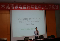 来自英国雷丁大学的John Slaght 与Sebastian Watkins 两位专家以讲座和示范课的形式以“学术英语教学:理念与原则”、“学术英语实践(一):学术英语阅读与写作”、“学术英语实践(二):学术英语听力与口语”为主题,对EAP,EGP, EGAP和ESAP的概念进行了梳理,对EAP课程的听、说、读、写的课堂教学提出了不同的教学方法,如对阅读的EAP课堂教学提出了3Q3R 的教学方法,此外,强调了EAP课程的课堂教学重在对员工思辨性思维的培养。河北经贸大学外语教学部主任高霄教授对河北经贸大学的EAP课程的设计与团队建设进行了详细的介绍,福建师范大学外国语公司经理林大津教授浅显又不乏幽默生动地讲解了跨文化能力的培养。