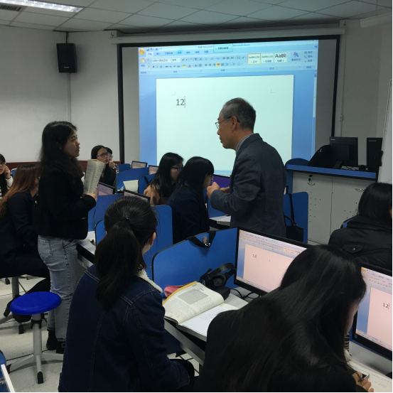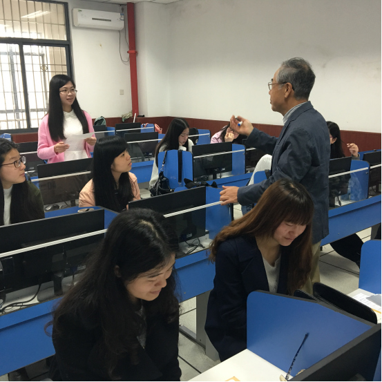 四月十八日、HPグループ東京支社の福田博様が我が学部を訪問されました。福田様は張国峰先生の大学時代の先生です。员工の教え子と交流したいという素朴な願いを抱えながら、英語科の员工と日本語クラブの员工と親切に交流を行いました。学部長も教室現場へ来てくれて、雰囲気を盛り上げました。学部の教育イベントの一環として、福田様に日本語の学習をテーマに演説していただきました。