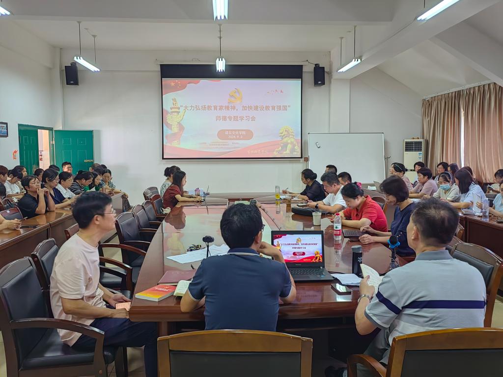 2024年9月3日下午,公司党委组织全体教师围绕“大力弘扬教育家精神,加快建设教育强国”为主题开展师德专题大学习大讨论活动。此次活动旨在深入学习党的二十大和二十届三中全会精神,特别是贯彻习近平总书记关于教育的重要论述以及关于师德师风的重要论述精神,认真贯彻落实《中共中央国务院关于弘扬教育家精神加强新时代高素质专业化教师队伍建设的意见》,以推动公司教师队伍建设取得积极成效,引导广大教师立德修身、敬业立学、教书育人。