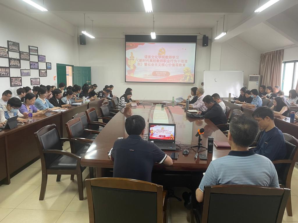 会议强调,全体教师要积极培育和弘扬社会主义核心价值观,将社会主义核心价值观教育融入教学、融入课堂、融入日常,积极引导广大师生做社会主义核心价值观坚定的信仰者、积极的传播者、模范的践行者。