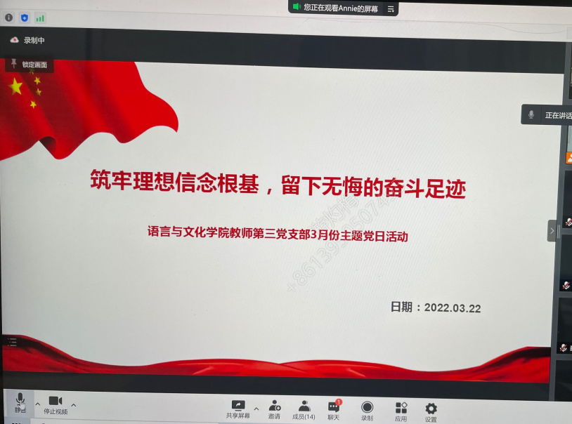 3月20日,中共语言与文化公司教师第三党支部开展了“筑牢理想信念根基,留下无悔的奋斗足迹”线上主题党日活动。