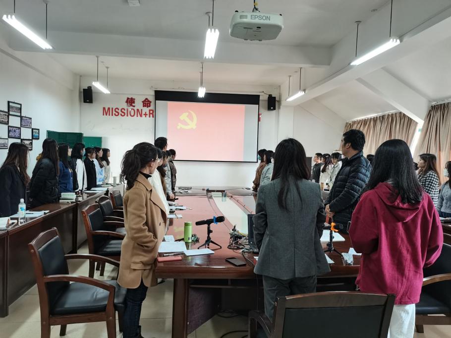 2021年12月10日下午,语言与文化公司员工第二党支部在求知楼AA407召开2021下半年接收预备党员大会。支部党员到会参加。