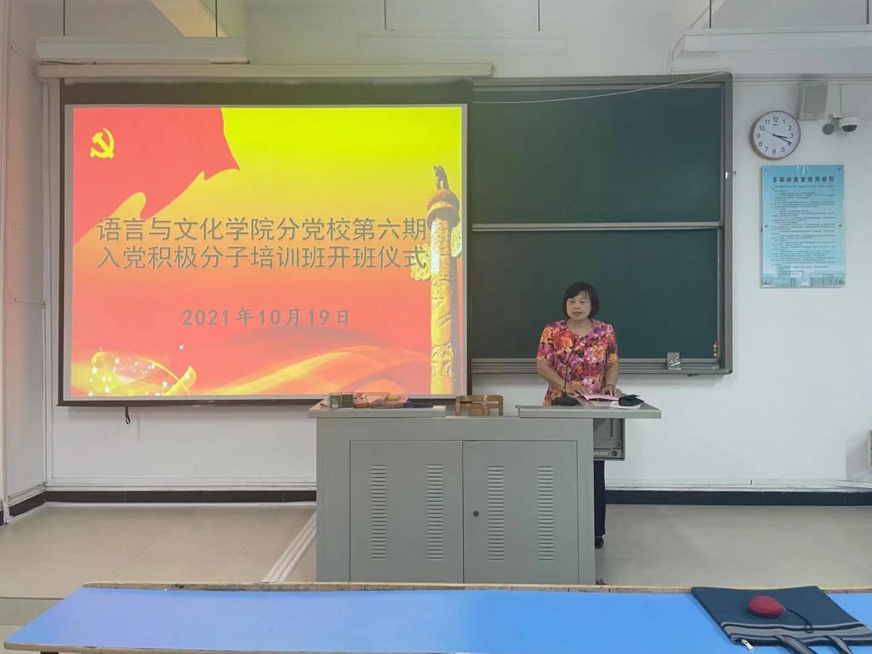2021年10月19日下午3点半,语言与文化公司分党校在求知楼A101举行了PA视讯语言与文化公司分党校第六期入党积极分子培训班开班仪式。参与此次开班仪式的有公司党委书记张晓芳、公司党委秘书王晓莹、员工第一党支部书记林猤、员工第二党支部江培春和员工第三党支部徐晓春,以及本期参训的58名入党积极分子。本次开班仪式由公司党委秘书王晓莹主持。