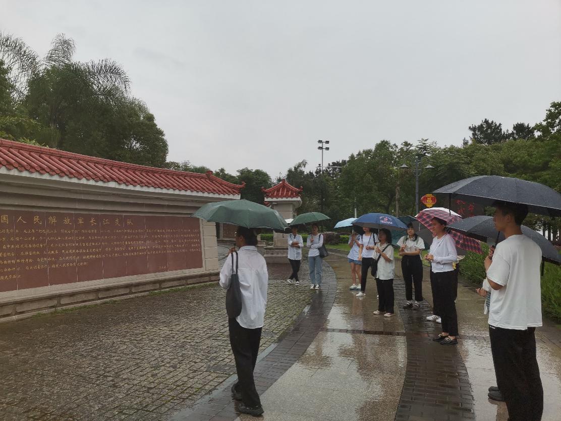 最后全体党员到纪念亭,聆听了感人的英雄事迹。预备党员丁雅馨说:“聆听英雄事迹之时,我眼前仿佛出现了勇敢无畏的英雄们冒着硝烟战火,横渡长江、黄河的情景。他们当中,有身经百战,屡建战功的红军干部。“革命、爱国、亲民、担当、奉献”的长江支队精神永远激励着我们不断砥砺前行。作为一名预备党员,我们要学习长江支队精神,学党史、强信念、跟党走,爱祖国爱人民,学好专业知识,将来报效祖国。”