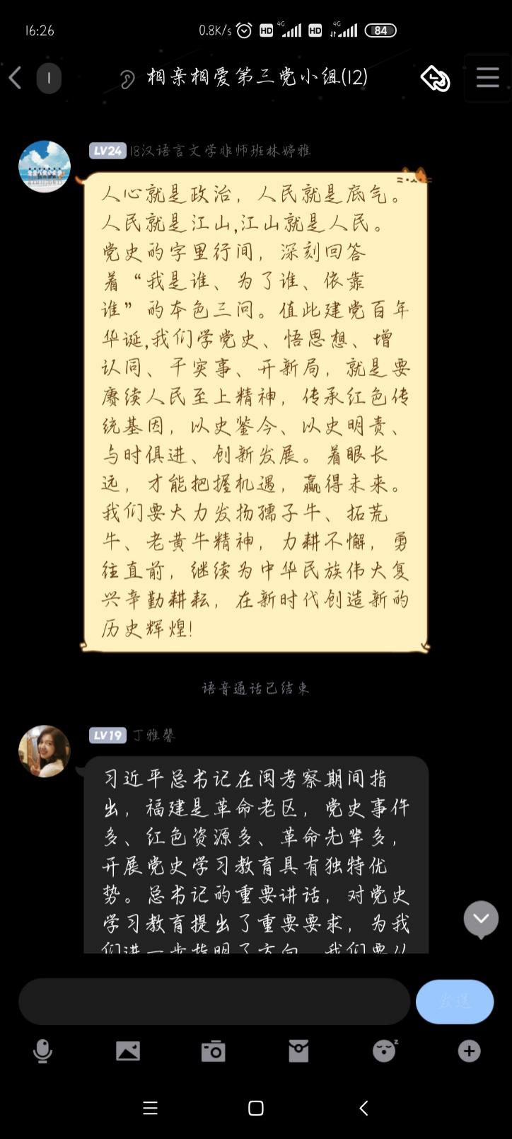 学习习近平总书记来闽考察讲话精神后,丁雅馨同志说:“习近平总书记在闽考察期间指出,福建是革命老区,党史事件多、红色资源多、革命先辈多,开展党史学习教育具有独特优势。总书记的重要讲话,对党史学习教育提出了重要要求,为我们进一步指明了方向。我们要从从学习中汲取奋进力量,要‘学’得认真、‘做’得到位,要带着责任学、深入思考学,学出使命担当、学出本领能力,努力把学习成果转化为推动工作强大动力,以更高标准完成党史学习教育各项任务,。”