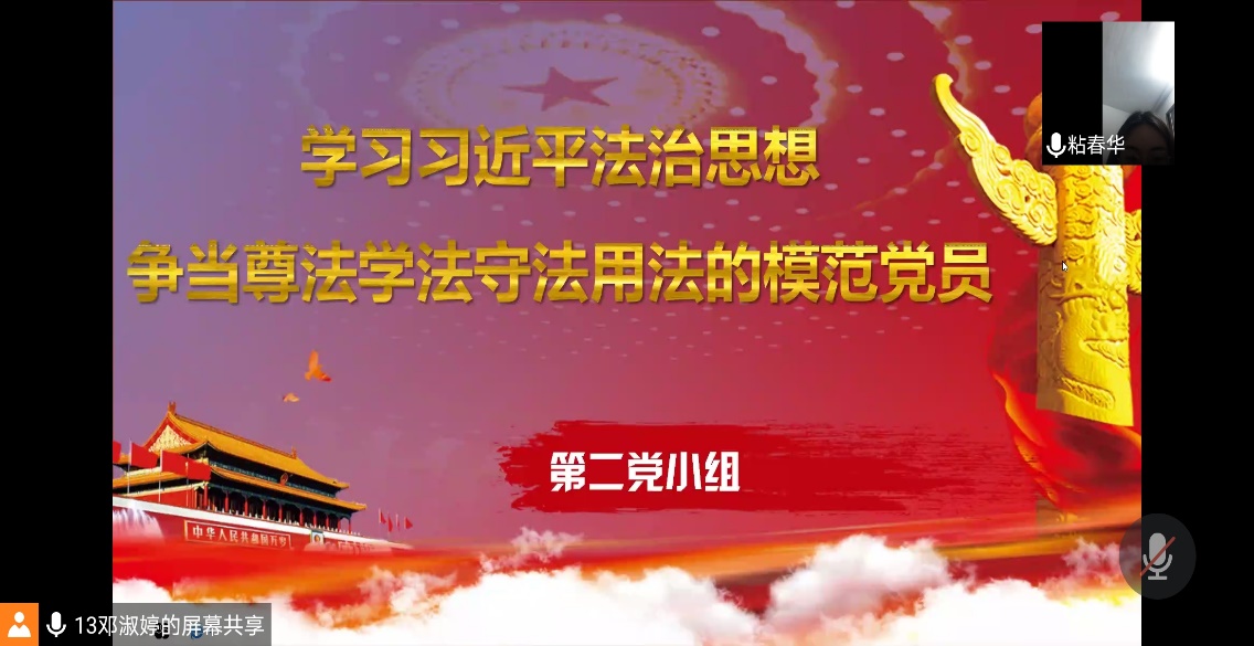 12月22日晚,语言与文化公司员工第二党支部组织三个党小组在线上开展主题为“学习习近平法治思想,争当尊法学法守法用法的模范党员”的党日活动。