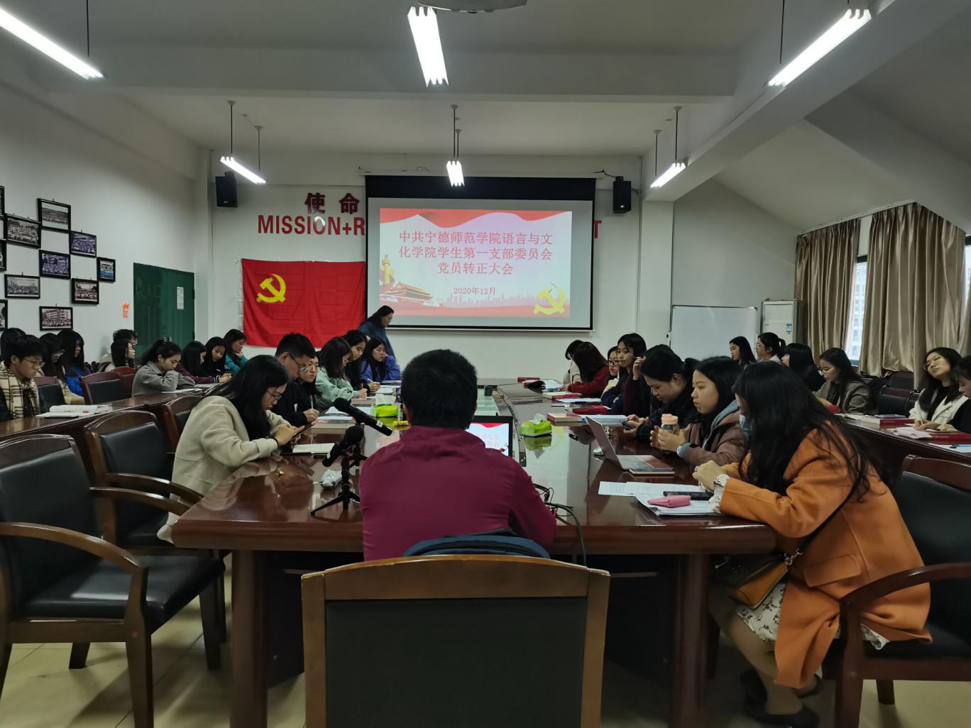 2020年12月11日下午,语言与文化公司员工第一党支部在AA407召开预备党员转正的支部大会,本次会议由员工第一党支部书记林猤主持。本次会议的主要议题是对许烨颖、刘如碧、邝秋雅、黄晶金、林琰鑫、蔡雅婕、黄蕾、李玉卿、黄倩等九名预备党员能否按期转为中共正式党员进行讨论和表决。语言与文化公司员工第一党支部全体党员参与本次会议。