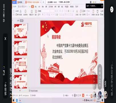 11月6日晚,语言与文化公司员工第二党支部三个党小组在线上开展了以“深入学习贯彻党的十九届五中全会精神,科学编制好公司‘十四五’规划”为主题的党日活动。