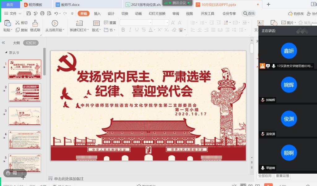 10月16日晚,语言与文化公司员工第二党支部组织三个党小组在线上开展主题为“发扬党内民主、严肃选举纪律、喜迎党代会”的党日活动。