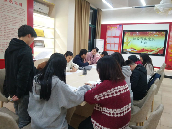 会上,首先由蔡聪敏、孙而齐等七位同志先后宣读了《入党志愿书》并向党组织汇报这一年以来的思想、工作和学习等情况。由入党介绍人徐晓春、何海菊、王晓莹、方楚楚对应联系发展对象介绍审查情况,并对其能否入党表明意见。到会正式同志对发展对象逐个充分讨论和审议,逐个以无记名投票的方式就是否接收为本支部预备党员进行逐一票决,经过大家无记名投票,均以全票通过。