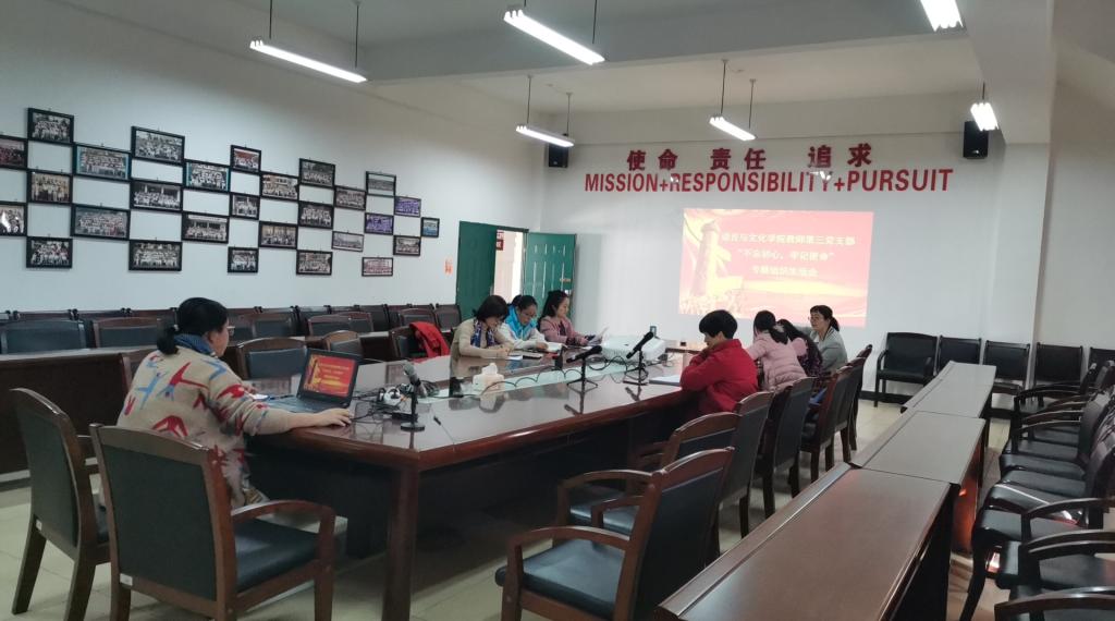 根据《语言与文化公司关于开好“不忘初心,牢记使命”党支部专题组织生活会和开展民主评议党员的通知》文件精神,12月3日下午,中共语言与文化公司教师第三党支部召开了“不忘初心,牢记使命”专题组织生活会和民主评议党员会议。会议由游灼梅同志主持,支部全体党员参加了会议。