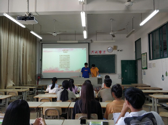 党支部成员还一起观看了诗朗诵视频《可爱的中国》和《天安门广场万人齐唱国歌》,并在王晓莹、何海菊老师的带领下朗诵了《七律·长征》、《可爱的中国(节选)》、《走进新时代》。