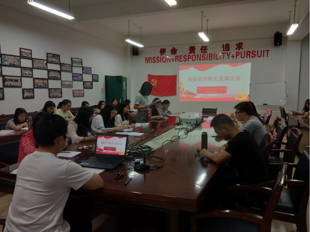 6月10日晚,语言与文化公司员工第一党支部在求知楼AA407召开预备党员转正支部大会,本次会议由员工第一党支部书记林猤老师主持,对戴晓蕾等8名预备党员能否按期转为中共正式党员进行讨论和表决,语言与文化公司员工第一党支部全体党员参与本次会议。