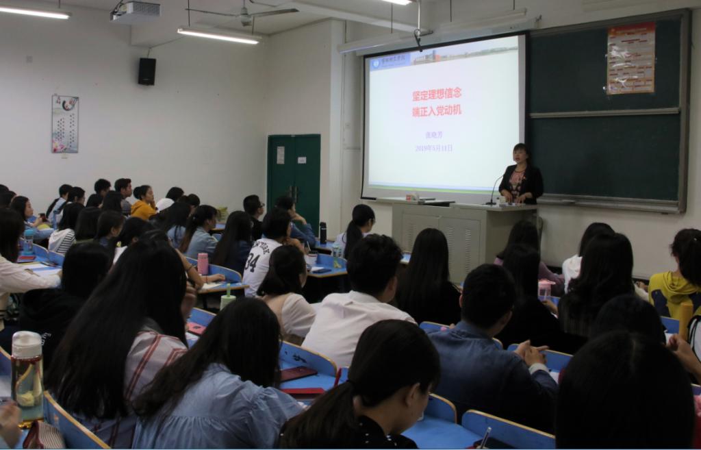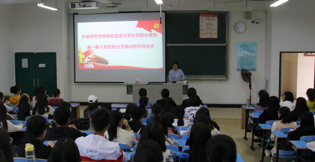 2019年5月11日上午9点,语言与文化公司分党校在求知楼AA301举办了宁德师范公司党校语言与文化公司分党校第一期入党积极分子培训班开班仪式。参加此次开班仪式的有党委书记张晓芳,党委副书记陶莉,党委秘书王晓莹,员工党支部书记祁燕苹、罗梦菁和林猤及本期109名员工入党积极分子。本次开班式由党委副书记陶莉主持。