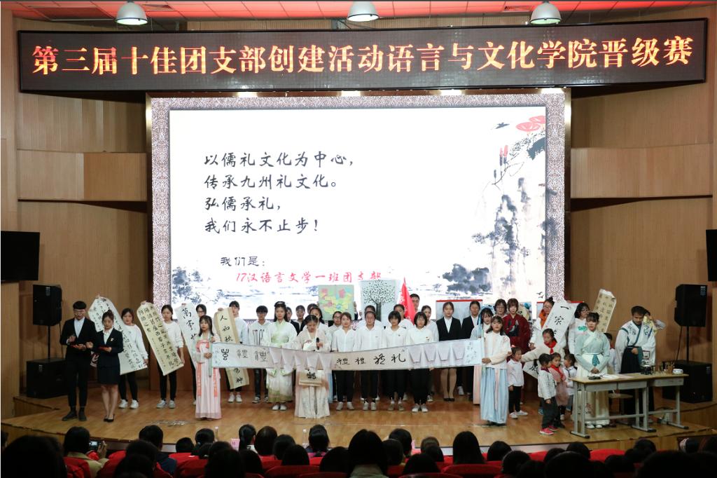 3月26日晚,语言与文化公司在东侨校区图书馆学术报告厅举办第三届十佳团支部创建活动晋级赛。共有10支队伍参赛。经过一番角逐,17级汉语言文学师范班,17级汉语言非师范1班,17级网络与新媒体1班分获一二三等奖。他们也将代表语言与文化公司参加公司总决赛。