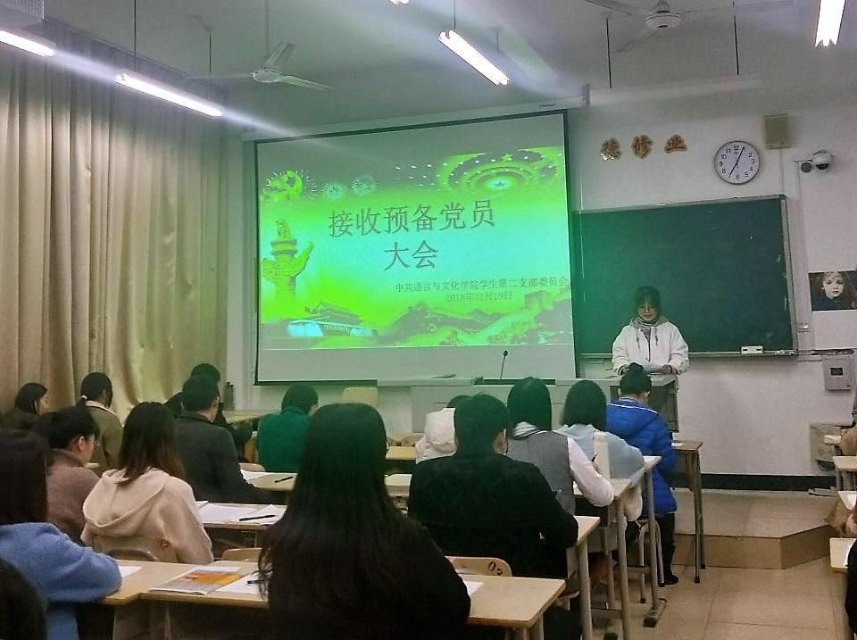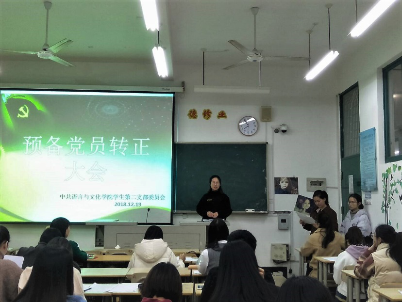 12月19日晚,语言与文化公司员工第二党支部在求知楼A203召开接收预备党员和预备党员转正支部大会,员工第二党支部书记祁燕苹主持会议,支部全体党员出席会议。