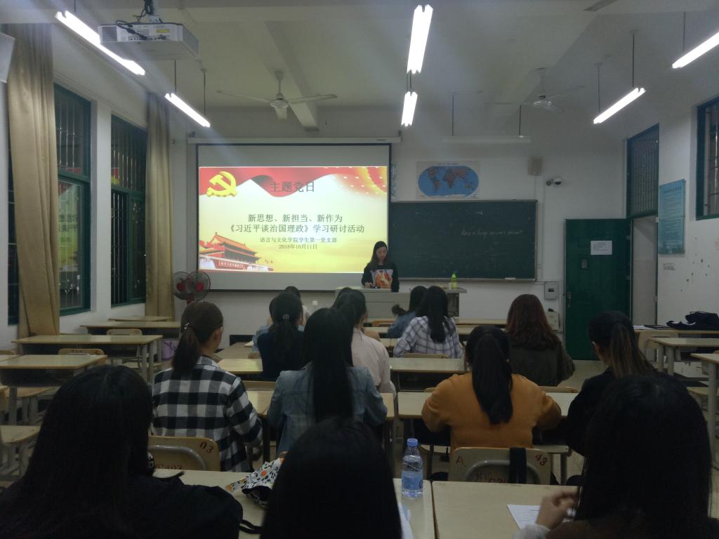 为加强全面从严治党精神在公司传播与实践,10月11日晚,语言与文化公司员工第一党支部组织支部党员围绕“新思想、新担当、新作为”这一主题学习《习近平谈治国理政》,语言与文化公司员工第一党支部全体党员与部分积极分子共同参与了此次活动。