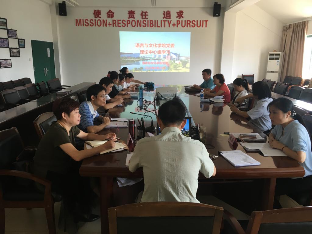 9月26日上午9点40分,语言与文化公司在求知楼A407会议室召开党委理论中心组会议,专题学习习近平总书记《习近平谈治国理政》第一卷专题18《提高党的领导水平》之《发扬钉钉子精神,一张好的蓝图一干到底》全文材料。公司班子领导成员张晓芳、龚帆元、陈丽冰、黄荣生、陶莉参加会议,公司团委、综合办、学工办、科教负责人,各党支部书记、各系(部)主任、民主党派代表、工会代表列席了本次会议。会议由党委书记张晓芳主持。