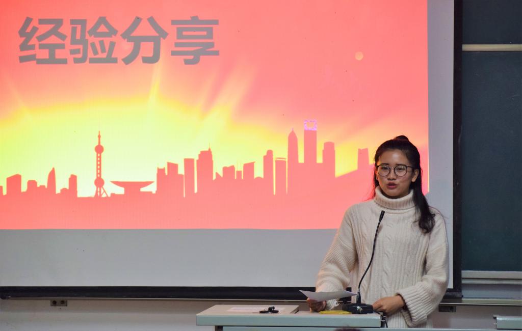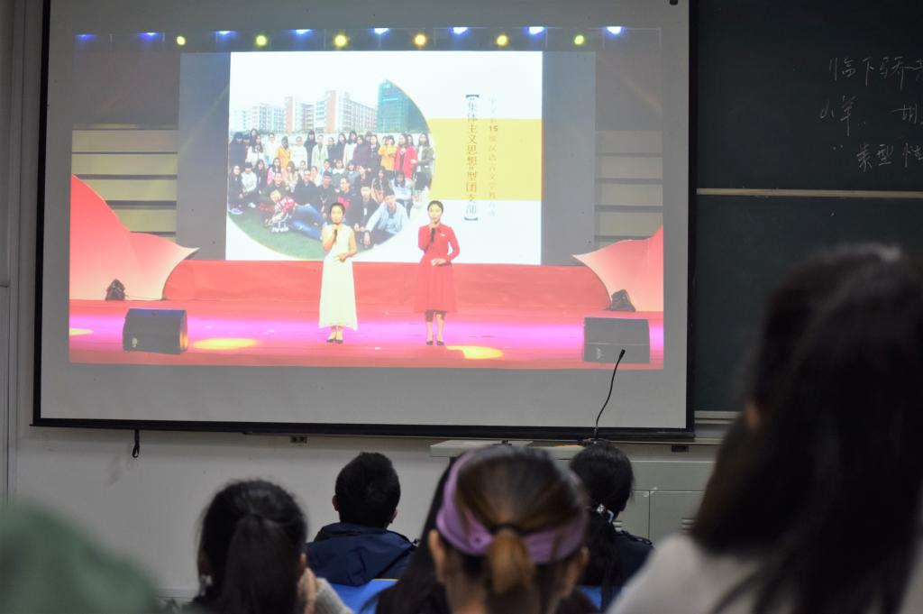 此次分享会由语院团委副书记吴靖炜主持,主要由党委副书记陶莉致辞、回顾2017年语院获得十佳团支部荣誉称号三个班级比赛视频、15级汉语言文学(师范)班班长雷雨同学分享组建团支部经验三个部分组成。