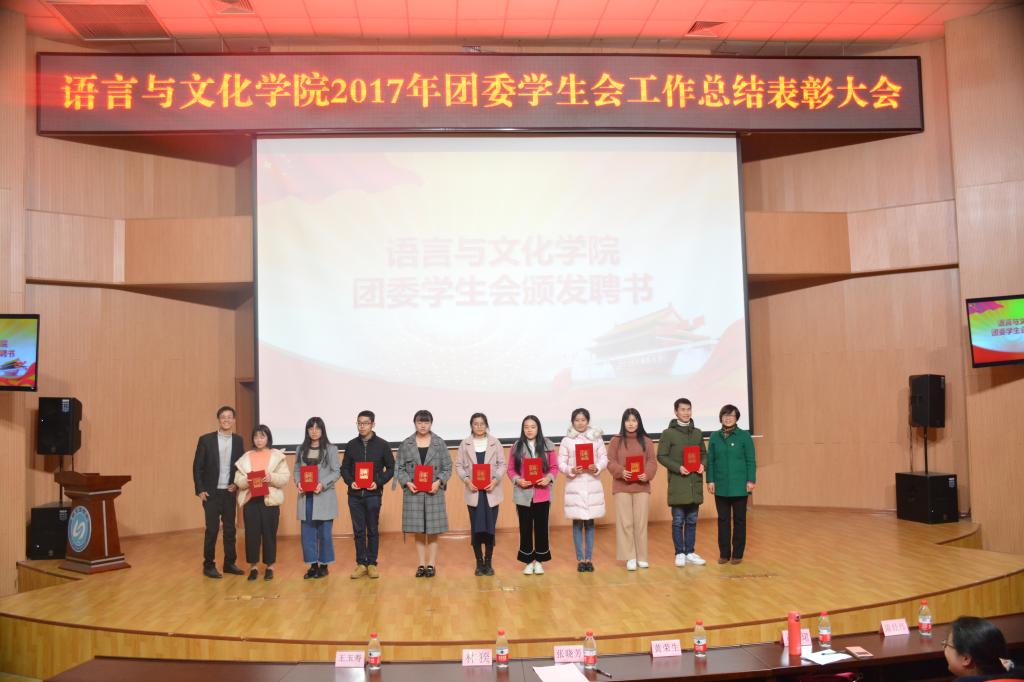12月28日晚上七点,语言与文化公司2017年团委员工会工作总结暨表彰大会在东侨校区图书馆报告厅举行。语言与文化公司党委书记张晓芳、副经理黄荣生、团委书记元佳珺、陈经纬老师、林猤老师出席现场,语言与文化公司第一届团委员工会全体成员、原中文系与原外语系团委员工会、原外语系自律会成员参加了表彰大会。