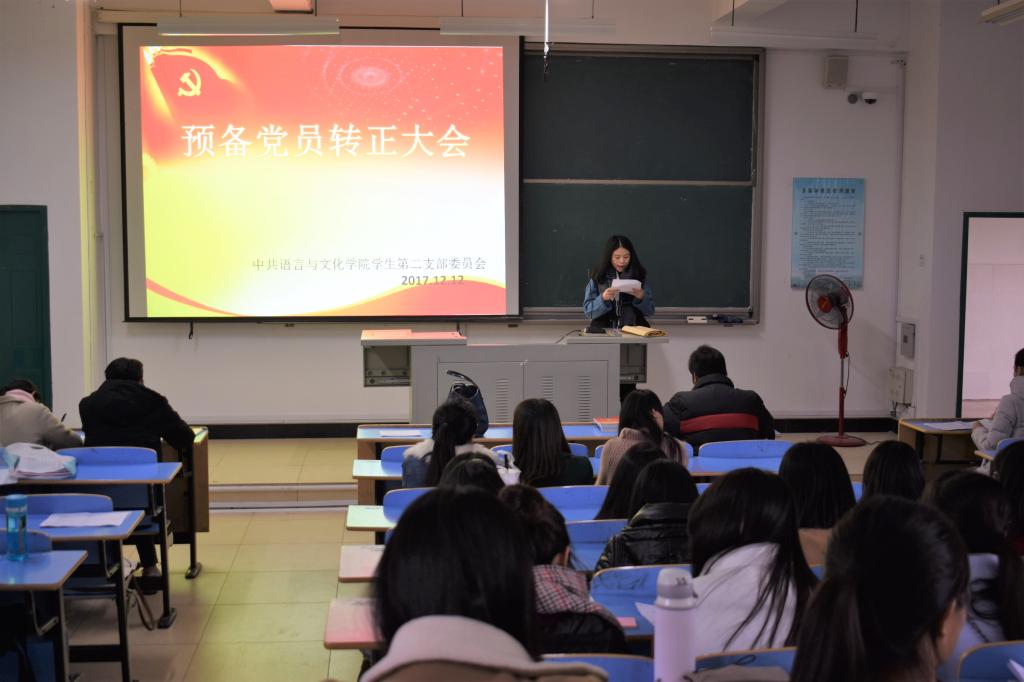 12月12日下午,中共语言与文化公司员工第二支部在求知楼A区301教室先后召开了预备党员转正大会和接收预备党员大会。员工第三支部书记罗梦菁老师主持了这两个会议。