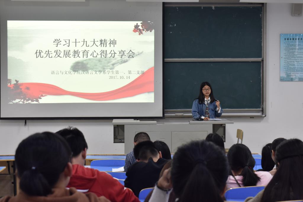 11月14日下午,中共PA视讯语言与文化公司员工第二党支部委员会和员工第三党支部委员会在求知楼A301教室召开“学习十九大精神之优先发展教育”为主题的心得分享会。员工第三支部书记罗梦菁老师主持本次活动,两个支部的党员、预备党员参加了本次活动。党支部所有党员和预备党员在会前分成若干党小组自发学习了十九大精神中优先发展教育的精神。