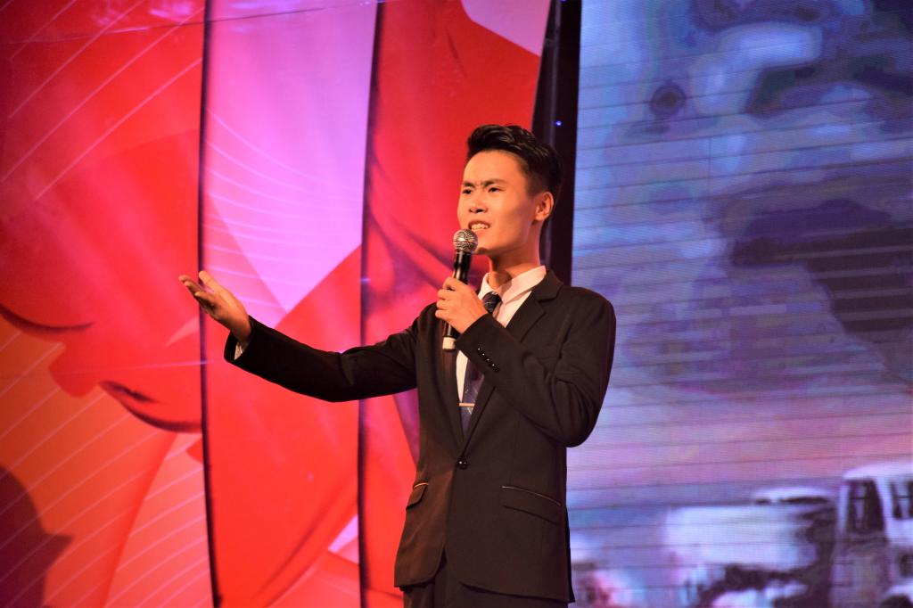 大赛以经典诗词为主要内容,弘扬红色传统,传承红色基因,进一步激发广大师生学习十九大精神和爱国热情。来自全校各院的十组选手深情朗诵了《永生的和平鸽》、《我的祖国》、《你是我永远的新娘》、《边防线上的你和我》等经典诗篇。朗诵的形式多种多样,包括独诵、双人诵、小组诵等形式,极具艺术表现力和感染力。“我志愿加入中国共产党,拥护党的纲领,遵守党的章程……”在活动开场,大家一起重温了入党誓词,共唱了国歌《义勇军进行曲》,把现场的气氛推到了高潮。公司李益长老师的原创作品《滴水穿石闽东情 同心共筑中国梦》谱写了闽东人民为“摆脱贫困”和实现“中国梦”的努力征程,体现了闽东人民的智慧和齐心建设美好家园的欣欣向荣。“谁说军嫂没有大义,那是奉献者最美丽的心早已把家国情怀凝成誓言,将不朽的爱情织进了鲜红的党旗里。”《我是你永远的新娘》是一个身着洁白婚纱的“新娘”为大家讲述军嫂背后的感人故事,引起现场观众的一阵阵热泪和掌声。《边防线上的你和我》通过两位朗诵者的慷慨激情把边防战士驻守边境的生活场景体现在大家面前,歌颂了我们的英雄——守护着祖国的边陲的边防战士。语言与文化公司的宋子菁同学朗诵的《痛祭赵一曼》向大家讲述着抗日巾帼赵一曼被敌人抓获在严刑拷打下依然坚持保守党的秘密直到最后,牺牲前给儿子的信更是让人感动,这就是共产党人无上的信仰和不屈的魂魄,鼓舞人心的故事引得现场观众感动落泪。语言与文化公司林辉琳老师改编的诗歌作品《百年侨批》,主要体现了在祖国积贫积弱的时代,一封封侨批尽展华侨血泪史和爱国情怀。