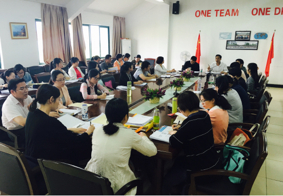 2016年5月17日下午,英语系教师党支部在求知楼AA407召开“两学一做”专题学习会。英语系全体党员教师参加本次会议,会议由英语系党总支书记陈茂和主持。