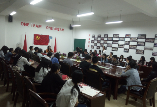 2016年5月20日晚8点,英语系员工党支部“两学一做”专题学习会于求知楼AA407召开。出席本次会议的有英语系员工第一党支部书记王晓莹、英语系员工第二党支部书记元佳珺和全体员工党员,本次会议由英语系员工第一党支部书记王晓莹老师主持。
