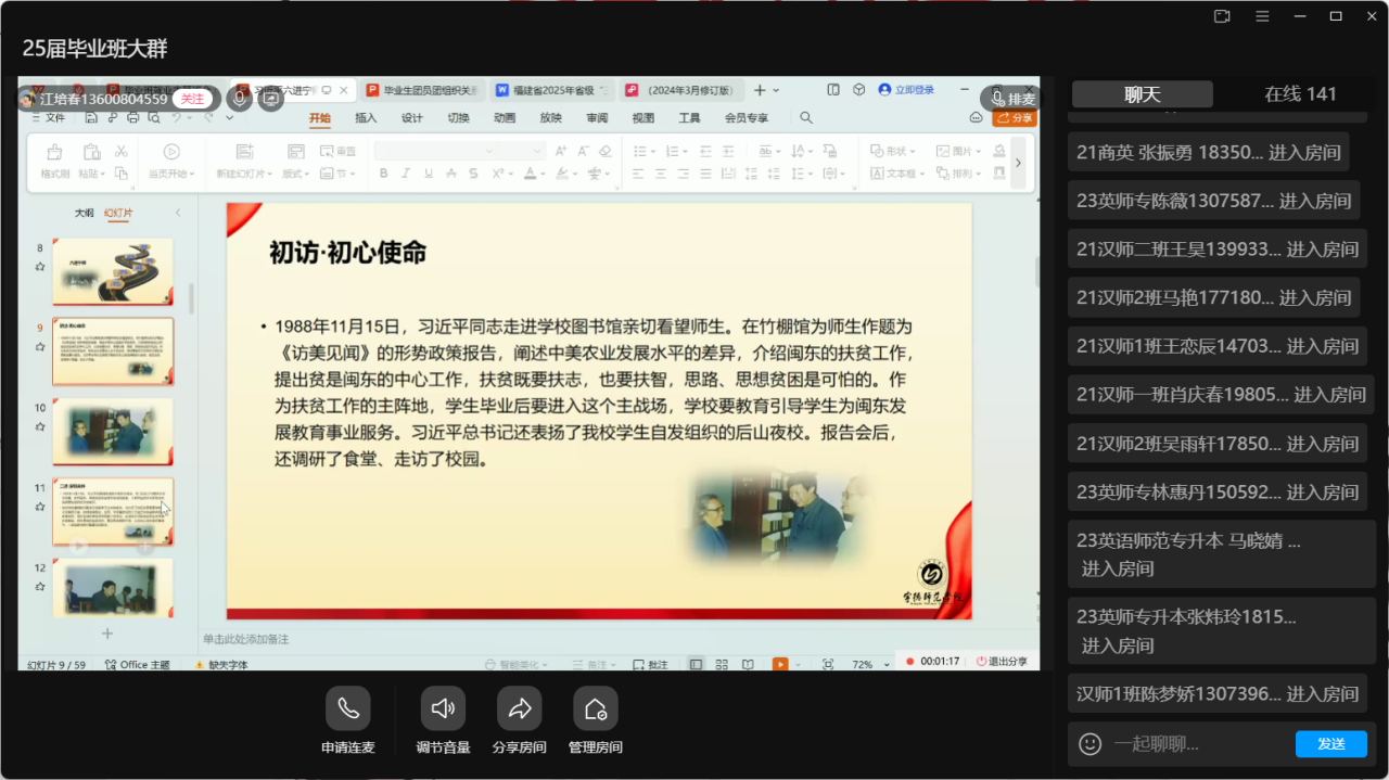 辅导员江培春在线上给21级毕业班开展宣讲活动