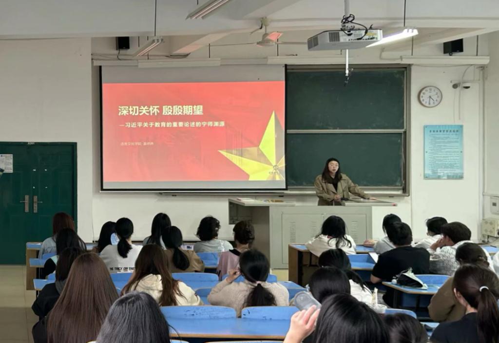 辅导员姜婷婷在AA301给24级英语师范1,2班,商英1班开展宣讲活动