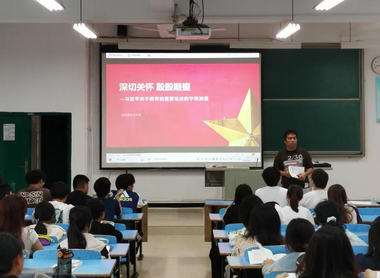 辅导员王玉寿在AA101给24汉语言师范1、2、3、班;24网络与新媒体班开宣讲会
