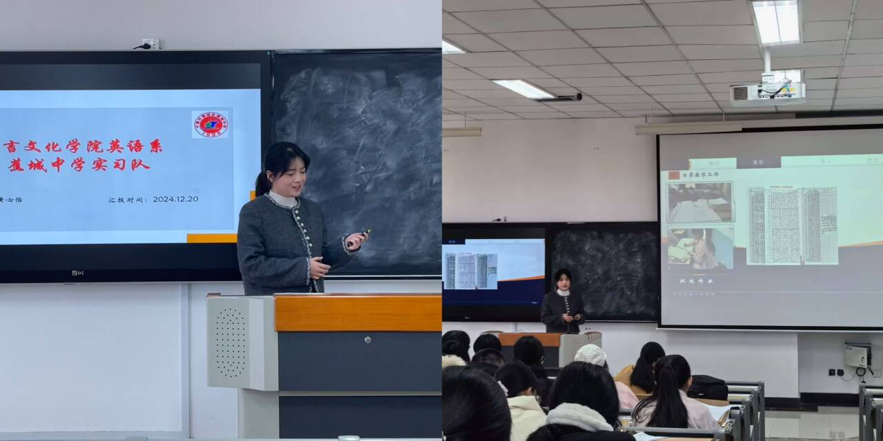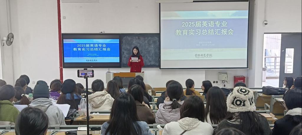为了促使同学们深刻提炼教育实习精髓,进一步夯实教育实践中的所学所得,2024年12月20日,语言文化公司英语系于讲堂群301教室成功举办了2025届英语专业教育实习总结汇报会。此次会议由祁媛媛同学主持,并邀请到了各实习队指导老师出席,全体2025届英语专业员工均积极参与其中。