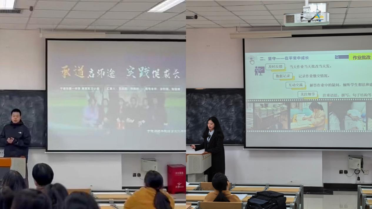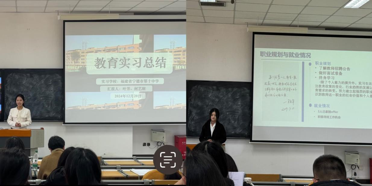 会上,来自宁德市第十中学、蕉城中学、东侨经济开发区中学、蕉城区第一实验公司等六个实习基地的2025届英语专业实习队代表,围绕备课授课、听课评课、班主任工作等多个维度,进行了全面而细致的汇报总结。他们通过生动的案例与深刻的反思,展现了从理论到实践的跨越,以及在实习期间所经历的成长与蜕变。