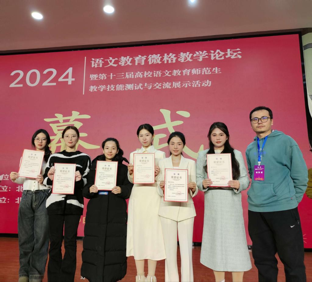 第十三届“华文杯”高校语文师范生教学技能测试与交流展示活动,于2024年12月7-9日在北华大学举行。本次比赛有来自全国各高校近600名选手参加比赛。公司由林銮生老师带队,遴选出汉语言文学系张软艳、陈逸琦、林时慧、王宁宁、钟滢、吴梦婷共6名员工参加本次比赛。经过参赛选手的激烈角逐和评审专家的严格评审,公司选手奋勇拼搏,一路过关斩将,表现优异,分别荣获教学能力测试一等奖3项,三等奖2项,优秀奖1项。